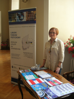 Podczas konferencji na stoisku promocyjnym ARR S.A. informacji o działalności Agencji i ofercie Lubuskiego Funduszu Pożyczkowego udzielał pracownik LFP – Mariola Dobosz.