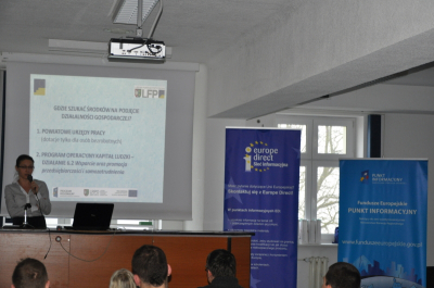 Udział w konferencji wzięła Kamila Szwajkowska, koordynator ds. funduszy europejskich i przedstawiciel LFP, która - w ramach bloku tematycznego pn. „Dlaczego warto zostać? Fundusze unijne dla młodych” - zaprezentowała możliwości uzyskania wsparcia finansowego zarówno na podjęcie działalności gospodarczej, jak i na jej rozwój. W trakcie prezentacji zostały scharakteryzowane takie źródła finansowania jak: Działanie 6.2 w ramach Programu Operacyjnego Kapitał Ludzki, Działanie 8.1 w ramach Programu Operacyjnego Innowacyjna Gospodarka oraz Lubuski Fundusz Pożyczkowy.